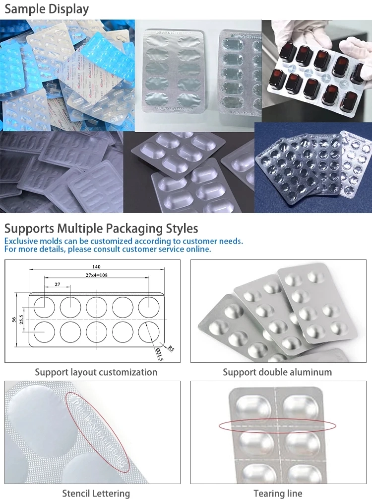 This machine is suitable for aluminum-plastic (aluminum-aluminum) blister packaging of solid products in the Specialized packing, chemical, light industry, and food industries such as tablets and capsules.