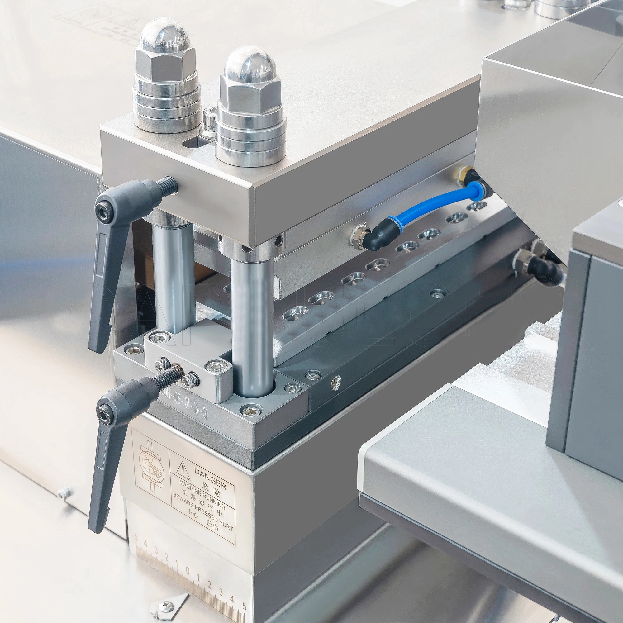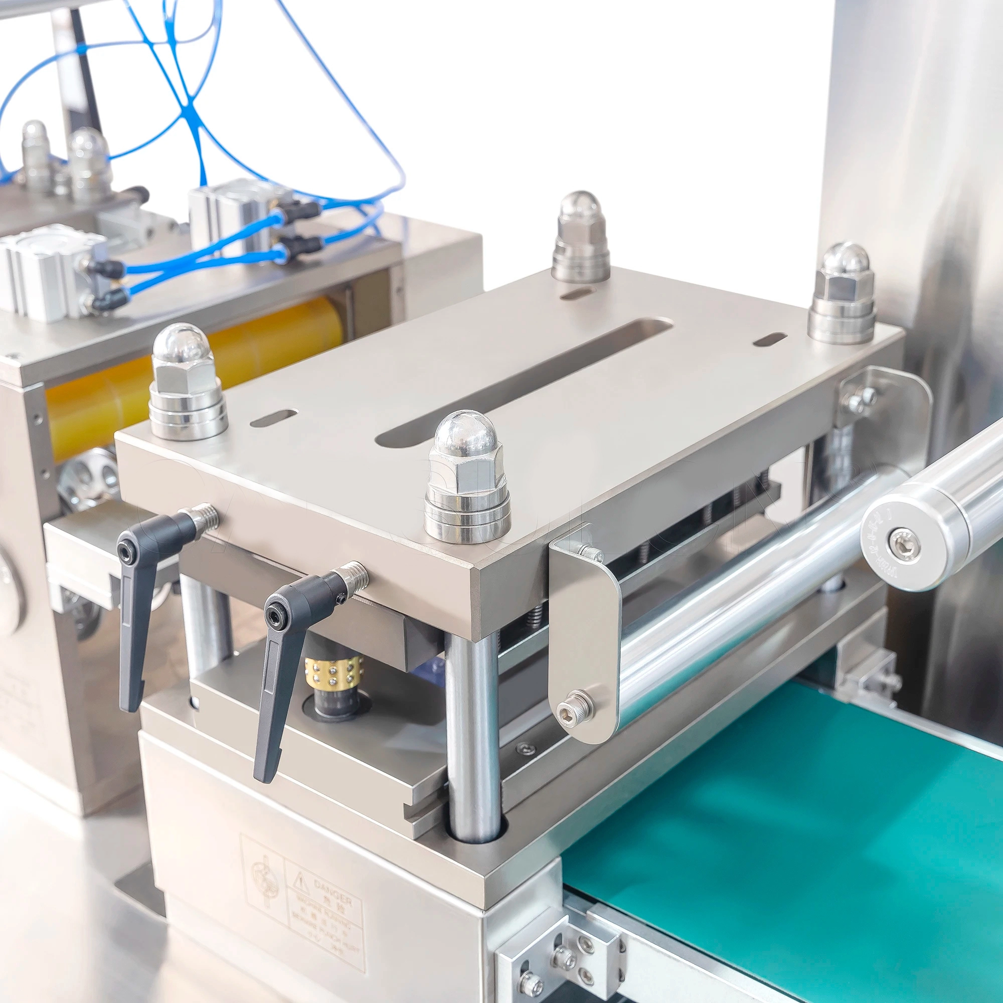 PVC blister forming, automatic material filling, PTP aluminum foil flat pressing and heat sealing, graphic alignment, batch number imprinting, tearing line pressing, medicine plate punching, and waste recovery.