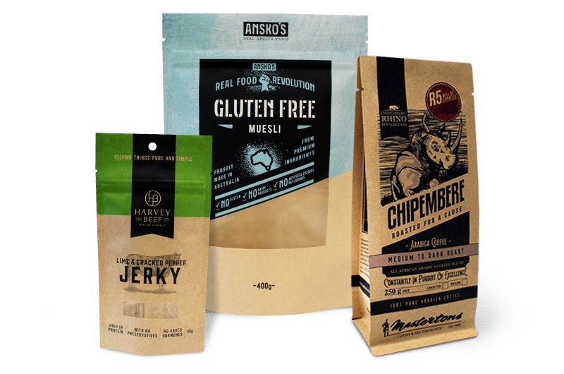 - Food Products: Beef jerky, biltong, dried meats, nuts, dried fruits, puffed snacks, candies, and pet food.