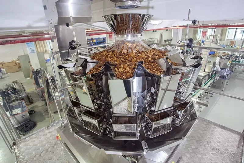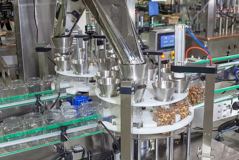 Suitable for automatic bottling filling of various granular products, such as nuts, coffee beans, peanuts, candy, seeds, potato chips, popcorn, almond, dry fruit, vegetable salad, frozen food, jelly, biscuit, chocolate, filbert, corn, pet food, etc.