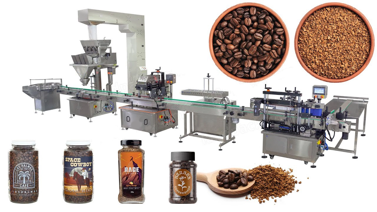 Automatic Coffee Bean Granule Square Round Bottle Filling Capping Labeling Machine