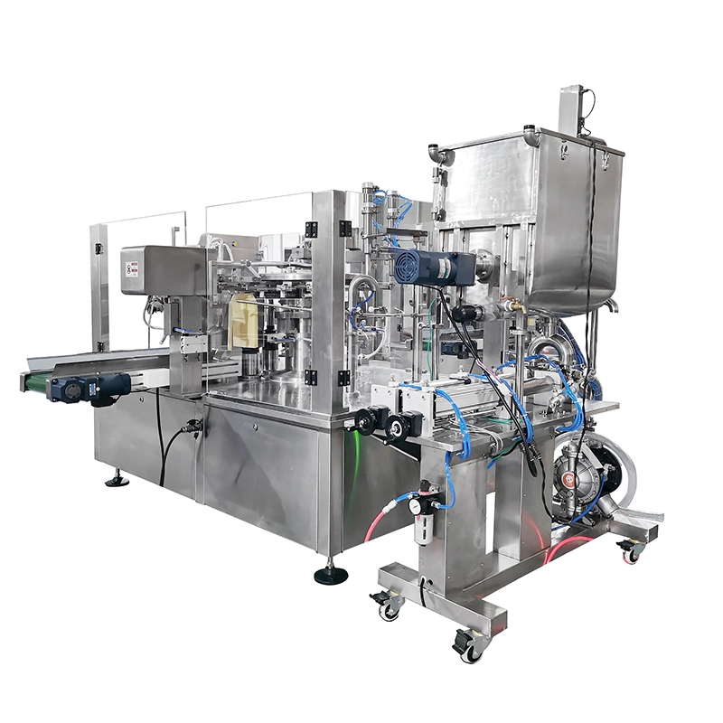 Automatic liquid filling sealing machine is equiped with liquid pump dosing system, suitable for various kinds of liquid like free flow fluid, semi-liquid, liquid with seeds and so on.