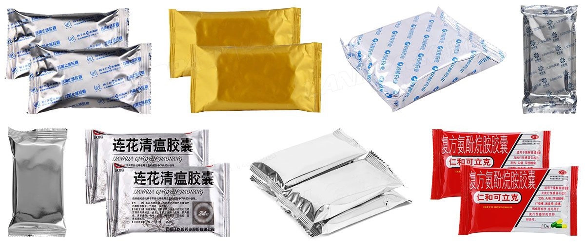 Automatic horizontal flow wrapping packing machine is suitable for packing various pharma materials such as pharma pills, ointment tablets, medicine patches, masks, foot patches, drug capsules, etc.