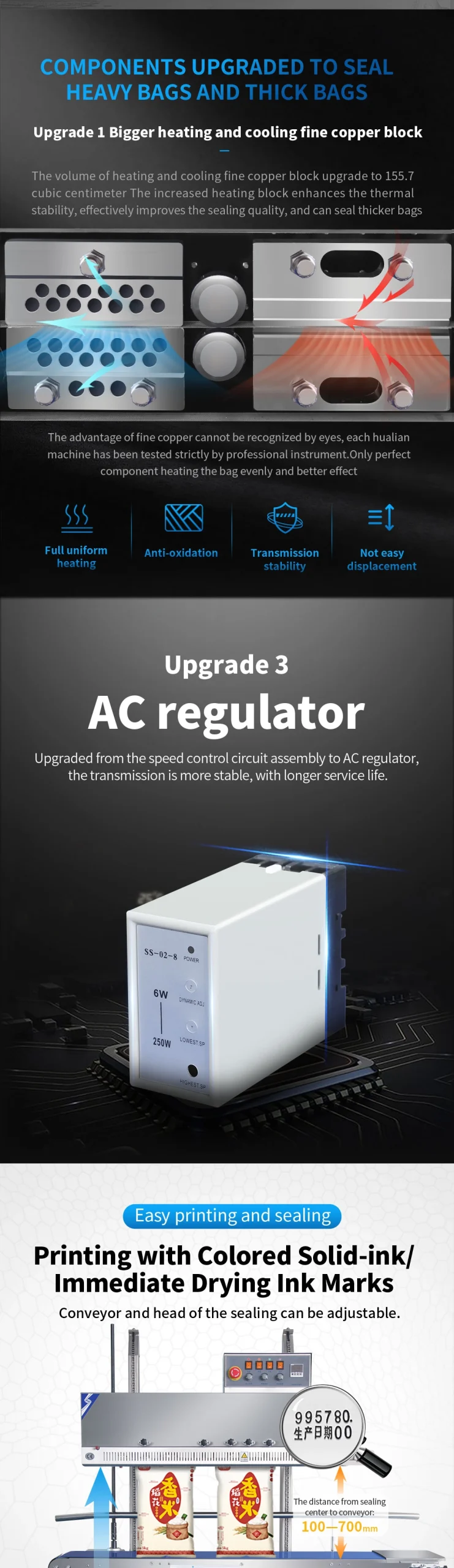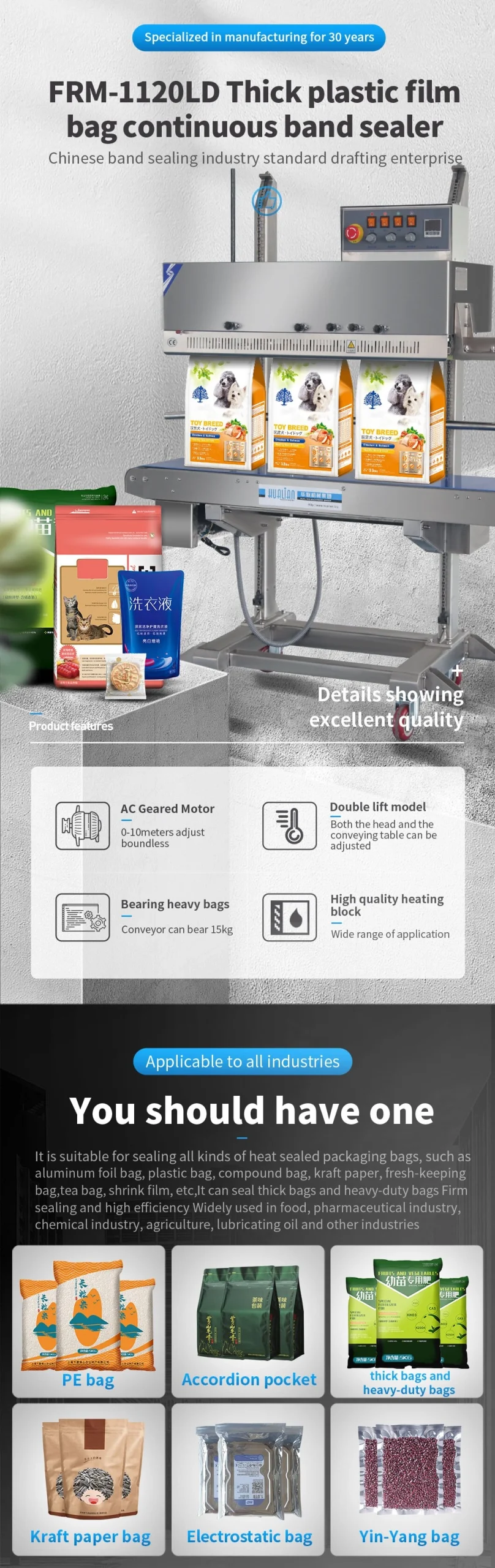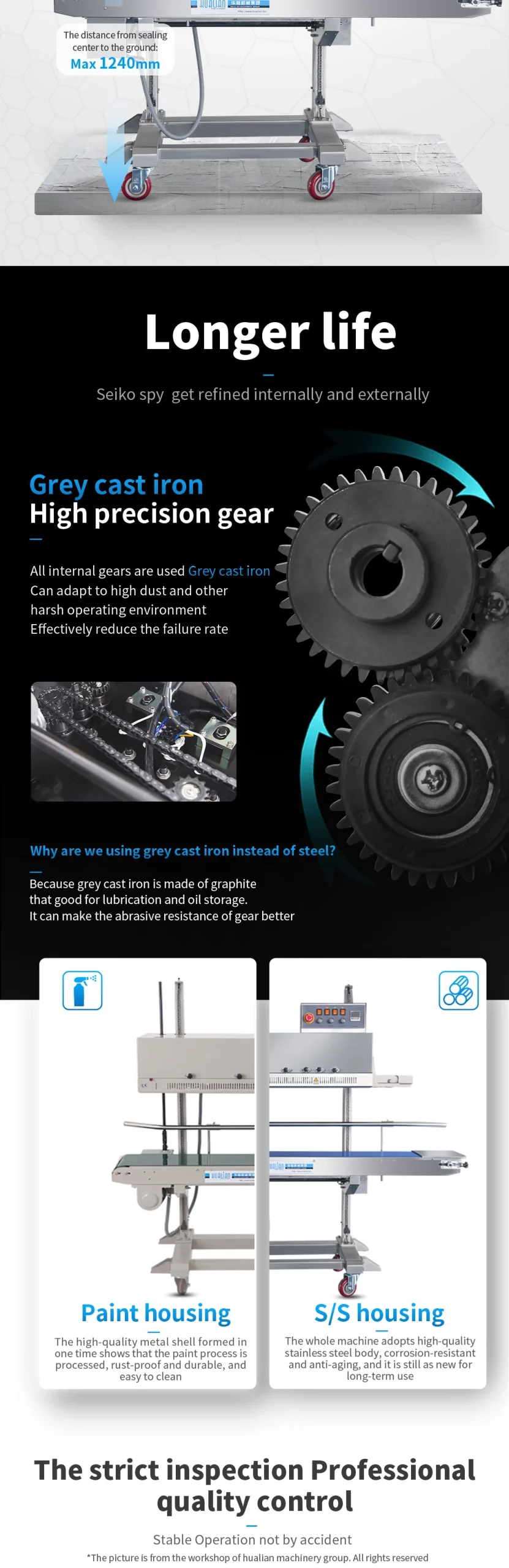 Continuous Automatic Vertical Band Sealer Food Packaging Pouch Bag Heat Sealing Machine With Head Adjustable
