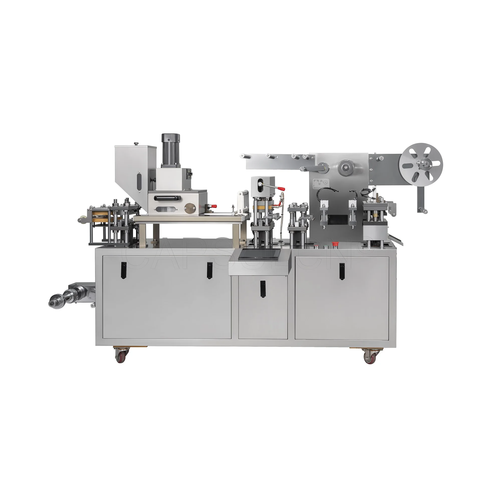 DPP-88 is a flat-plate aluminum-plastic blister packaging machine which integrates many functions including PVC feeding, PVC heating, PVC forming, PTP feeding, sealing of PVC and PTP, batch number printing, indentation line making, etc. It is suitable for all kinds of capsules, tablets, sugar coated tablets, honey pills, injections, ampoules, etc. CapsulCN The products have the characteristics of long shelf life, good sealing performance, beautiful appearance, safety and hygiene, conforming to the GMP production standards.