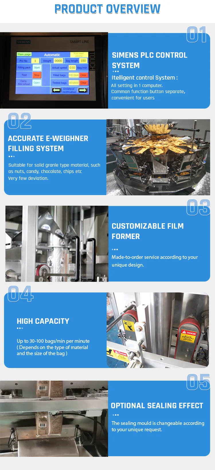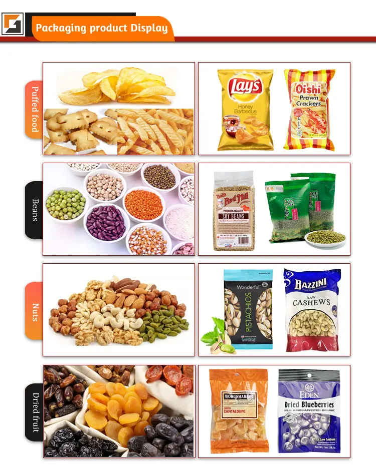 High level automatic snack packing machine multi-function chips beef jerky dried fruit shrimp Chocolate grain packaging machine