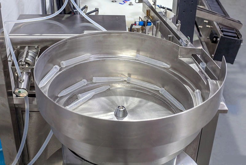 2. Double vibrating discs to realize automatic tube loading and automatic capping, two filling heads and two screw caps, the speed reaches 20-40/min;
