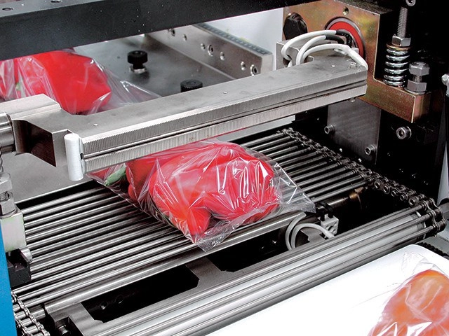 - This version is specifically designed to pack groups of peppers in combination with a weigher. The machine is provided with intermittent operating cross seal jaws.