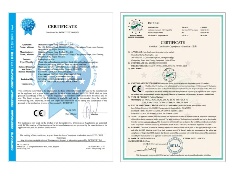 The machine is fully stainless steel material which comply to food safety grade and rust-proof, equip reliable performance electric & mechanism compoment.High packing capacity and speed, high efficient and lower your labour cost. The machine is with a series function of automatic measuring, filling, bag forming and making, sealing and cutting process. The finished packaged pouch is reliable and elegant.
