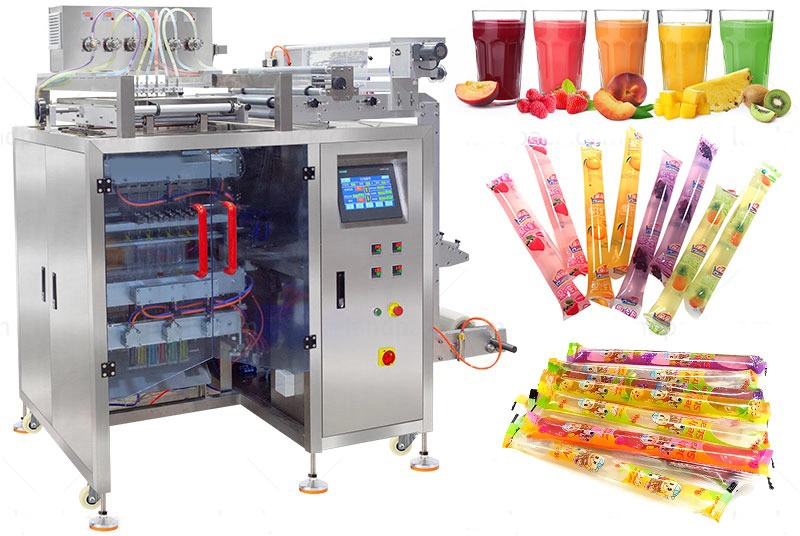 Multi lanes various flavors liquid stick packing machine suitable for many kinds of liquid products, such as popsicles, ice pop, jelly, mouthwash, ketchup, flavoring, sauce, pasty, shampoo, salad dressing, cream, body wash liquid, and so on.